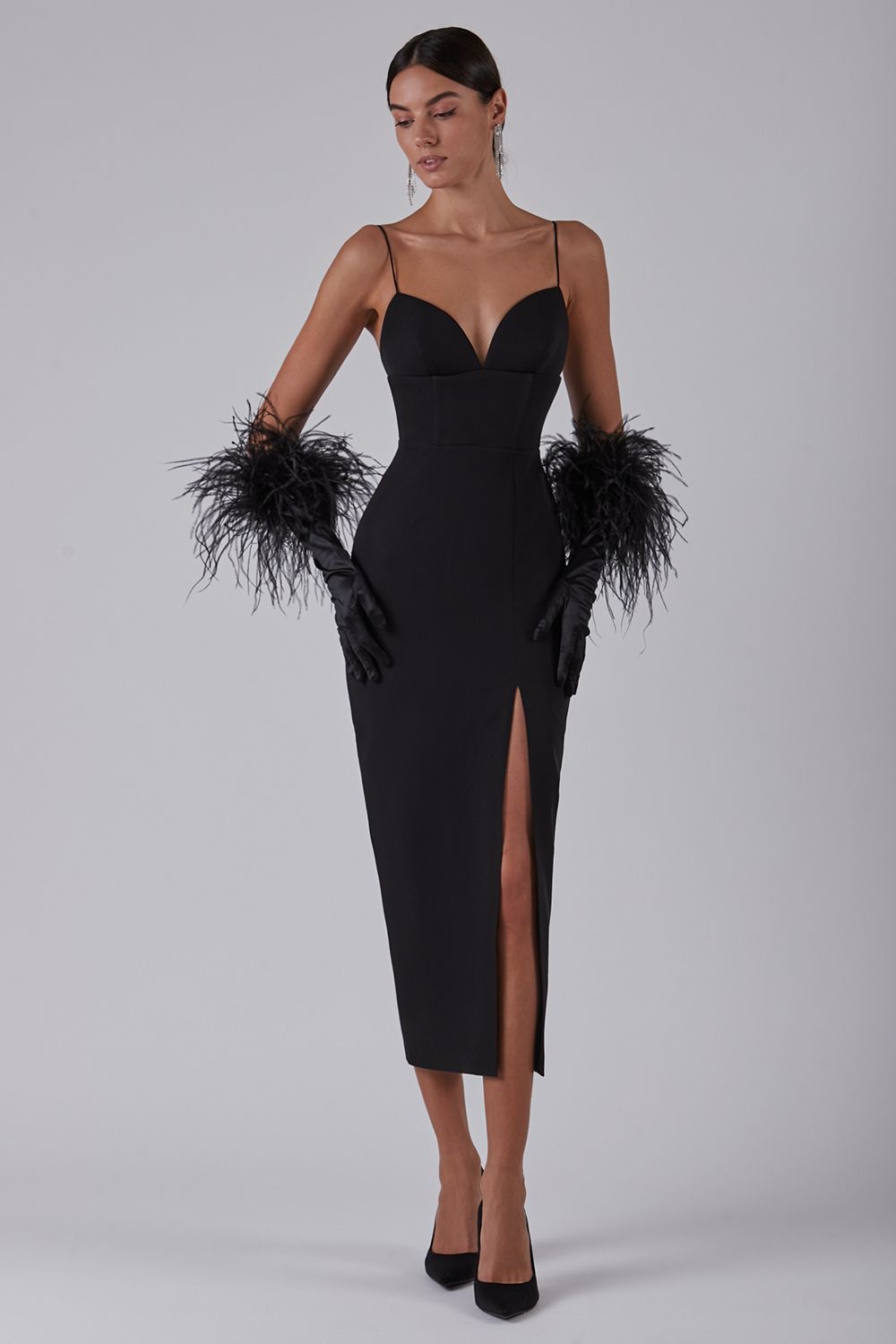 Высокие перчатки, украшенные перьями страуса. Состав: 97% полиэстер, 3% лайкра