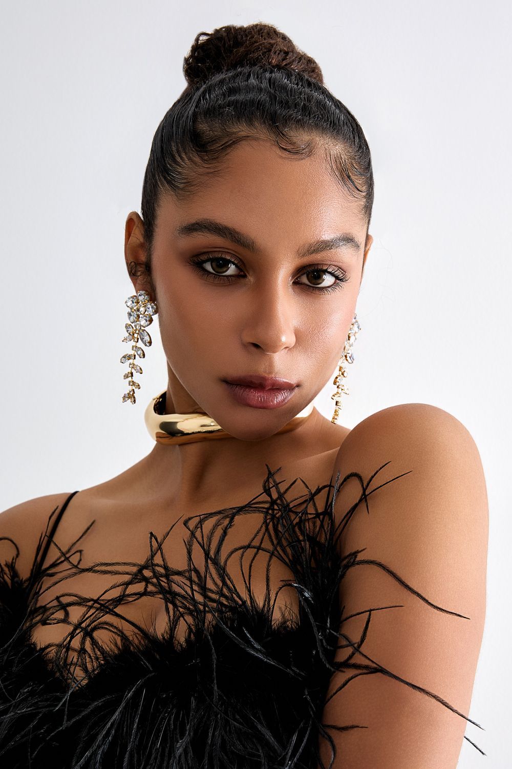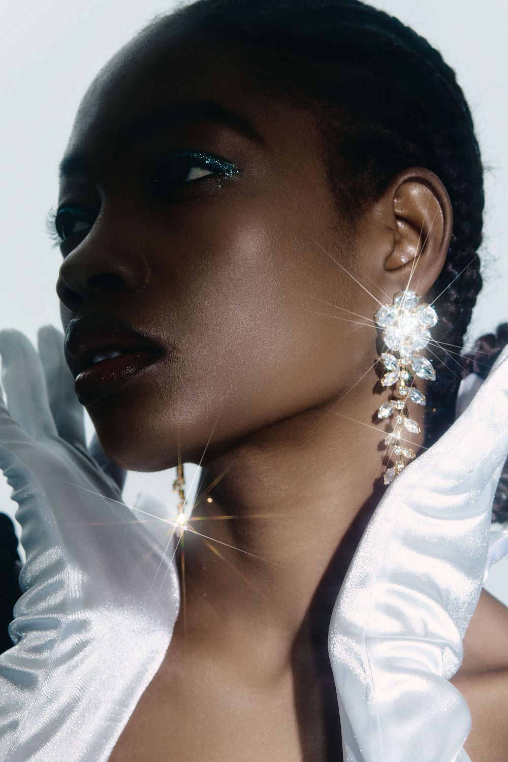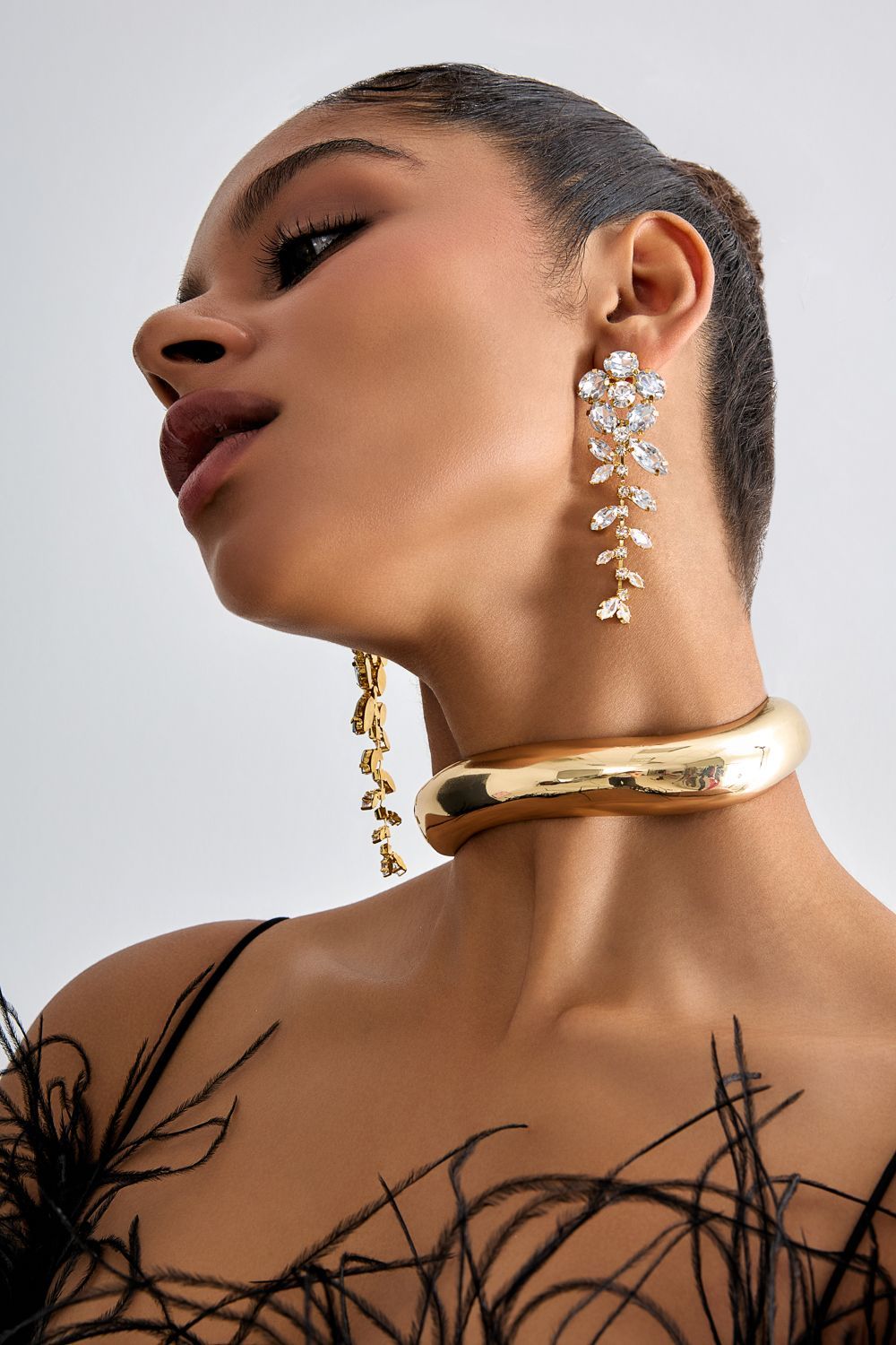 Длинные серьги в форме цветка из кристаллов, фурнитура с золотистым покрытием. Яркий акцент для праздничного или повседневного образа. Состав: Металл/стразы.