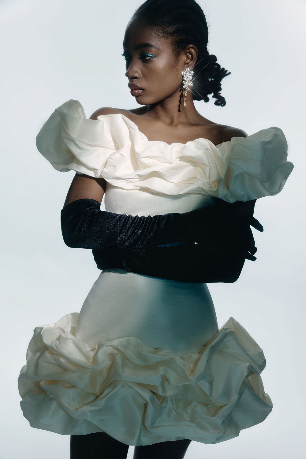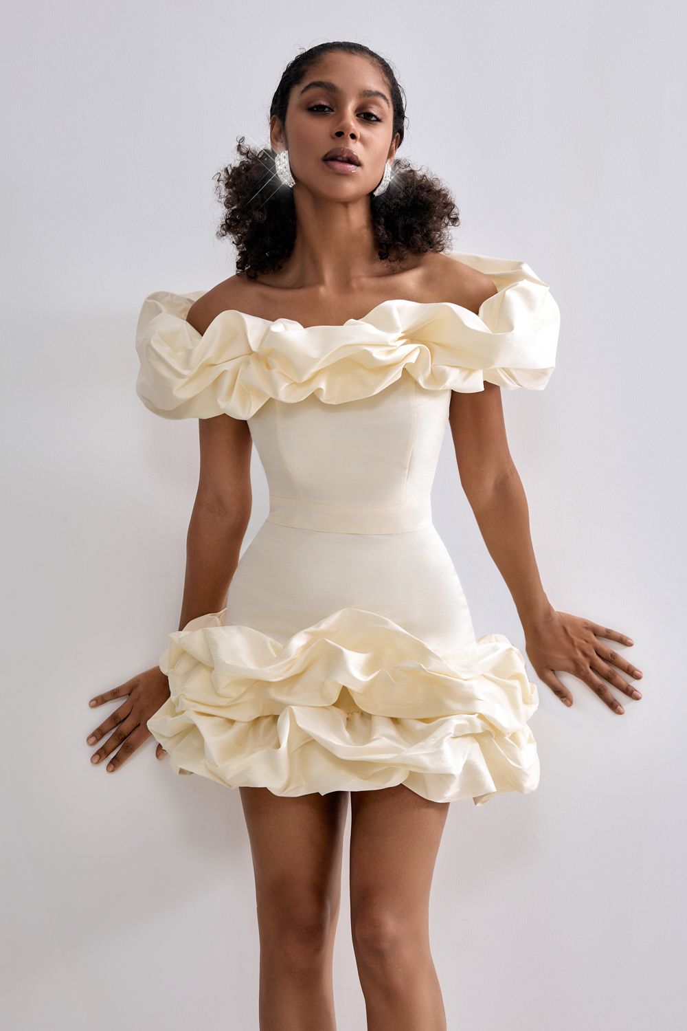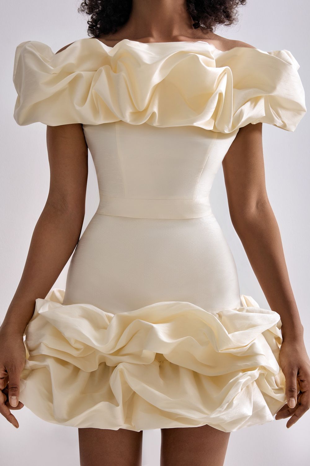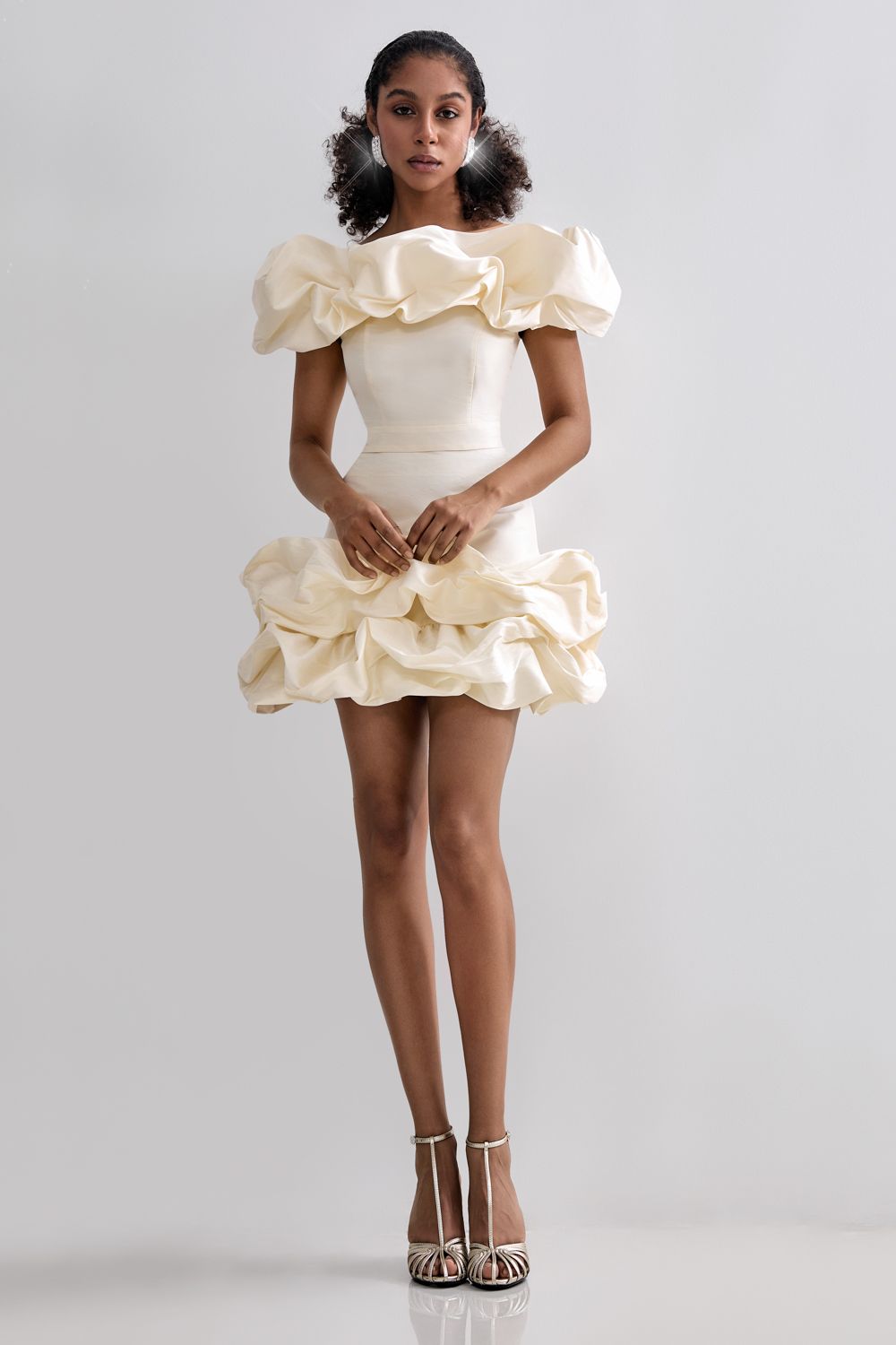 Праздничный облегающий топ украшенный воздушными оборками. Состав: 88% полиэстер, 12% вискоза, Подкладка 95% полиэстер, 5% эластан