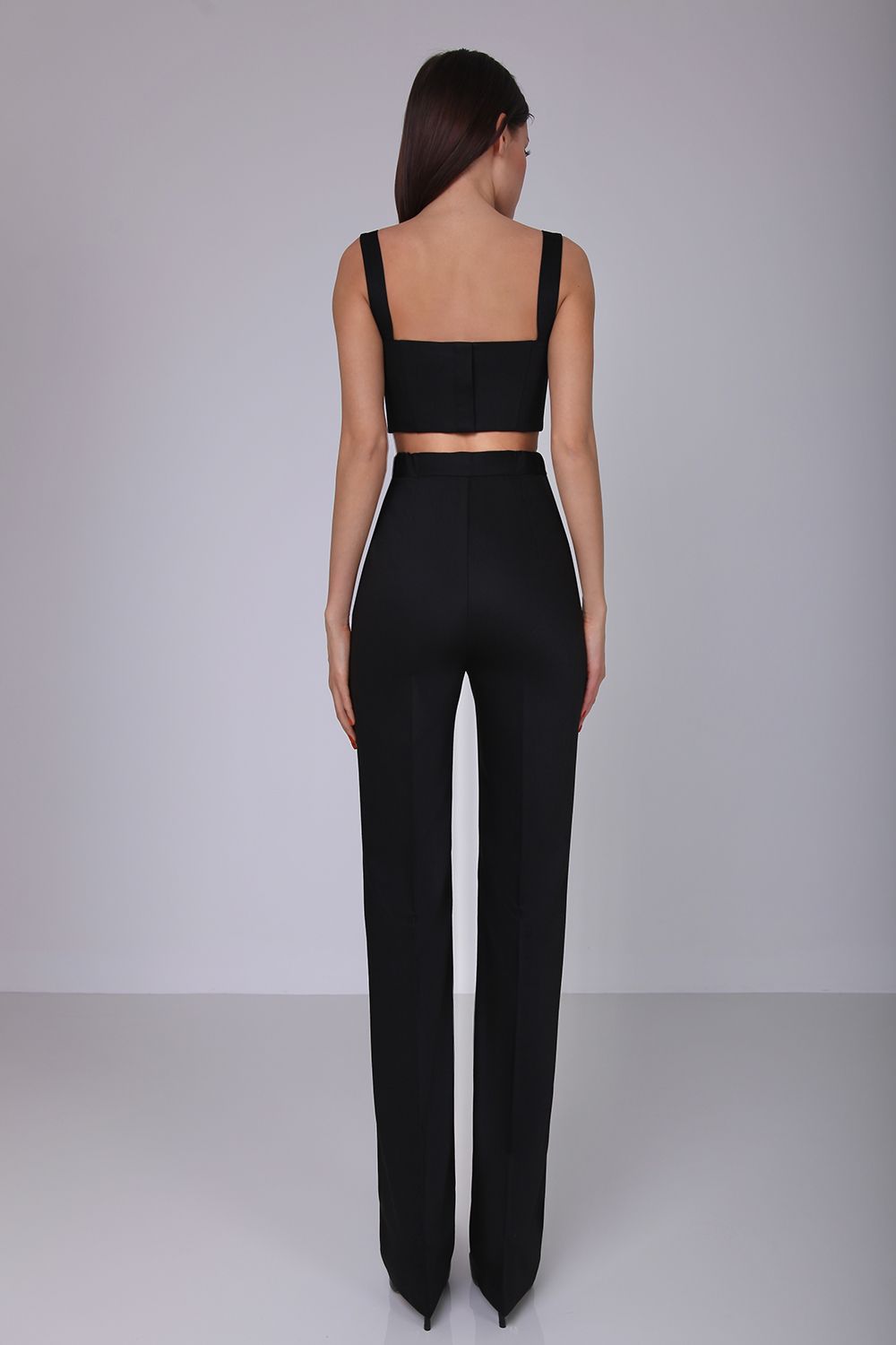 Брюки прямого кроя с завышенной талией и стрелками. На талии эластичные вставки для более плотной и удобной посадки. Состав: 63% вискоза, 32% полиэстер, 5% эластан.