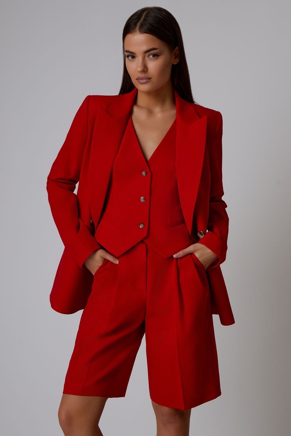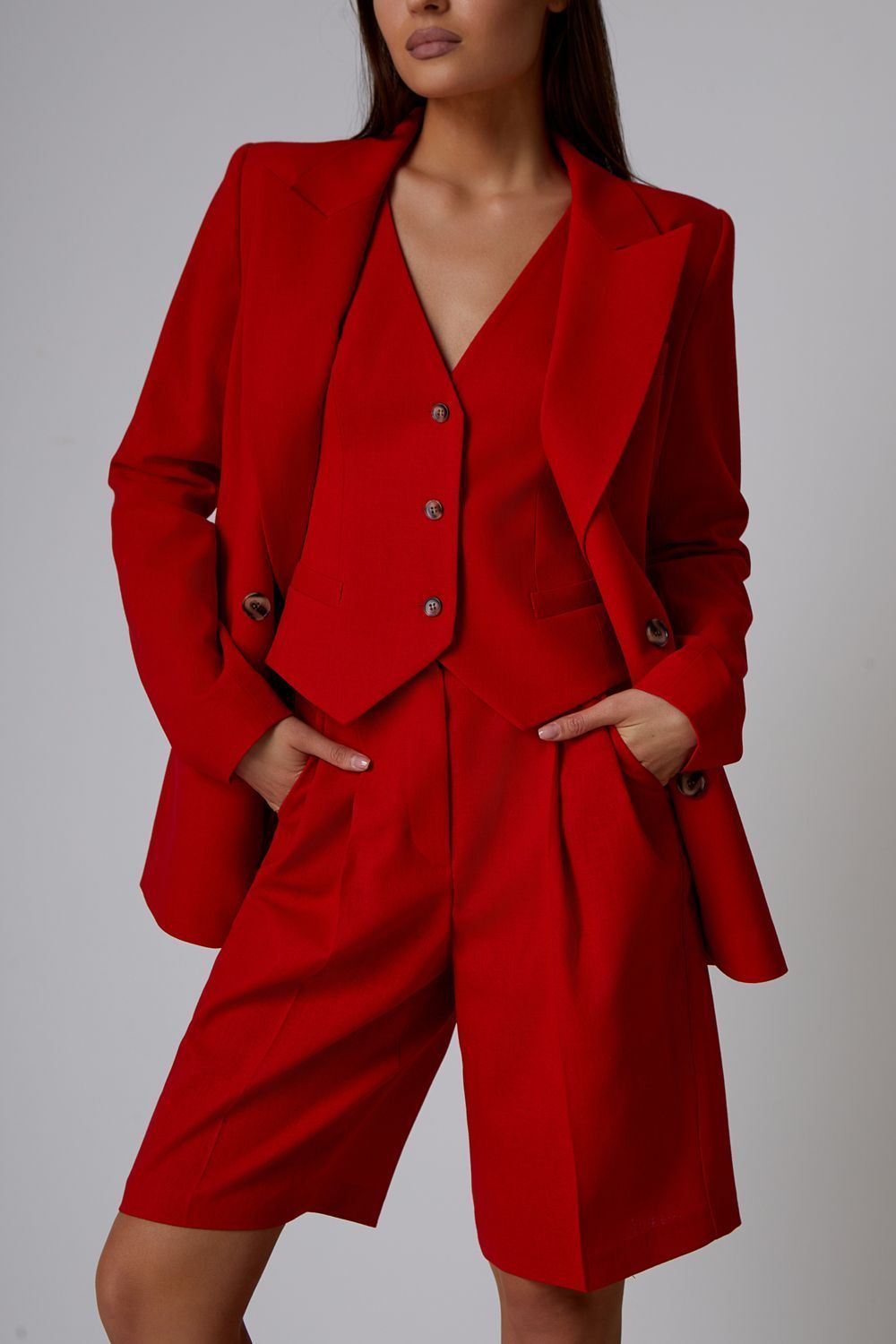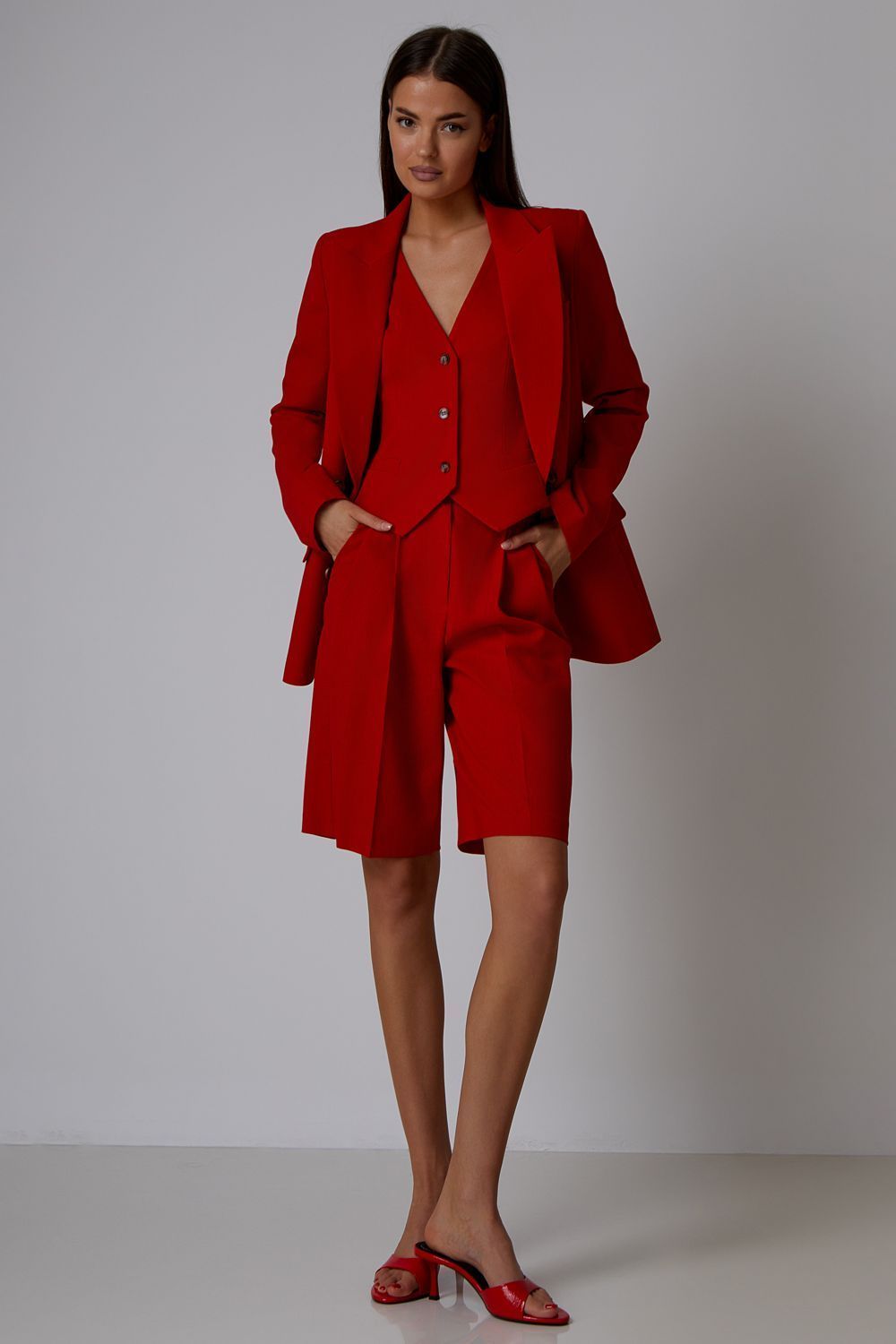 Прямые льняные шорты, идеально подходящие к жакету (арт. 51342) и жилету (арт. 50901) из коллекции LN Family. Состав: 35% вискоза, 35% лен, 30% полиэстер.