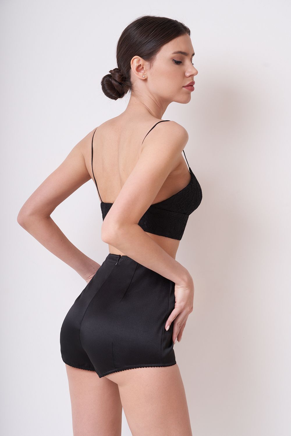 Облегающие шорты с завышенной талией. Можно носить как отдельный элемент одежды, так в дополнение к полупрозрачным юбкам и брюкам из нашей новой коллекции. Состав: 100% Полиэстер