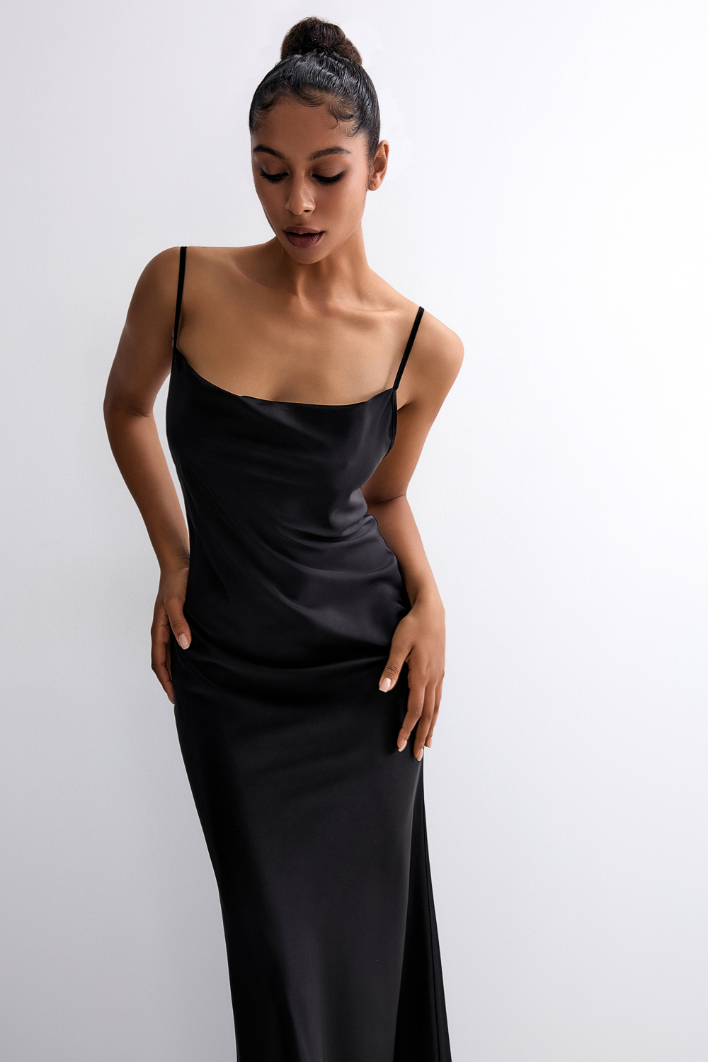 Женственная сорочка выполненна из высококачественного плотного атласа. Акцентный вырез на спинке привлекает внимание. Состав: 95% полиэстер 5% спандекс