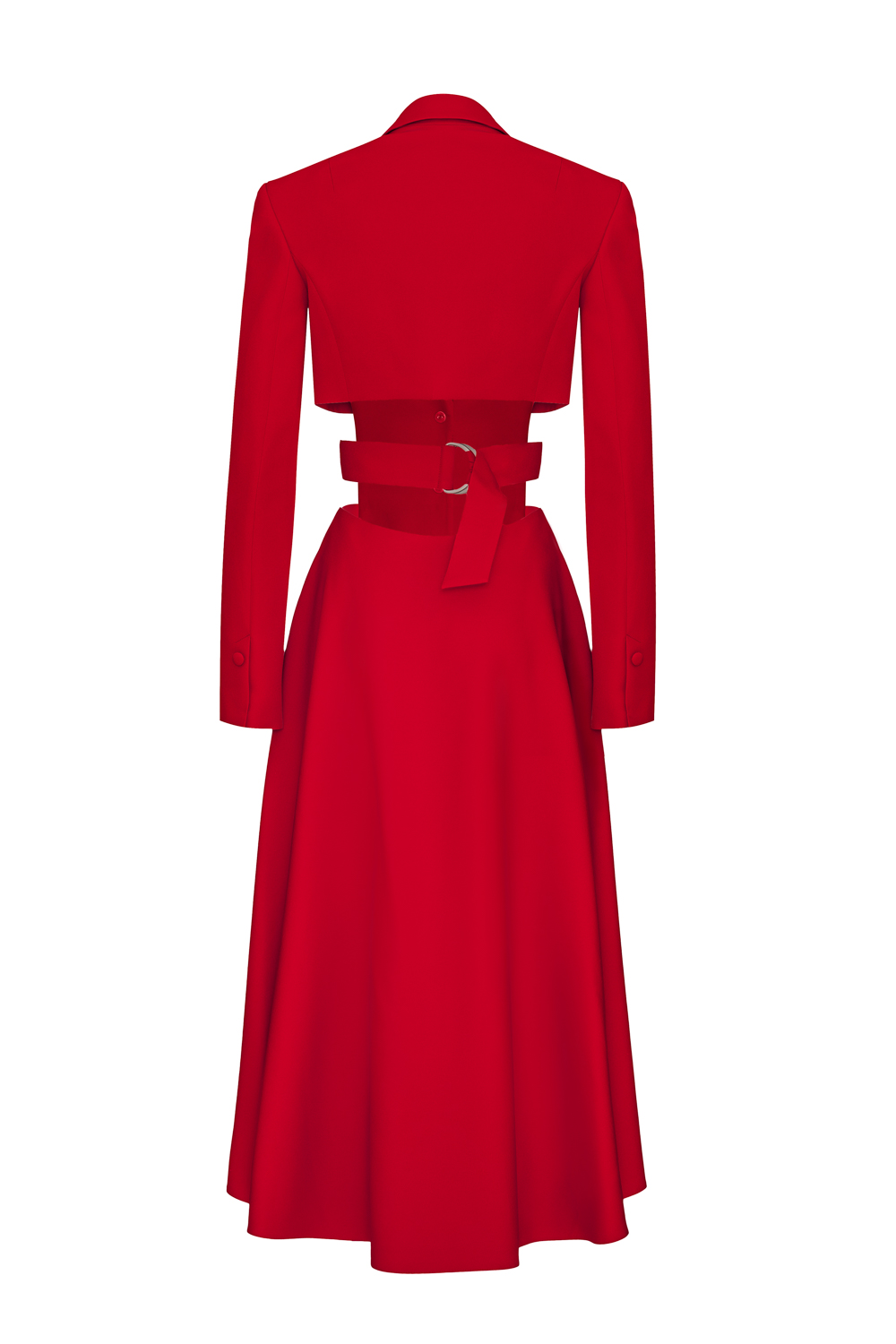 Платье миди с поясом и вырезом на спине, который переходит на переднюю половину талии. Длина верхней части по спинке 33 см, длина юбки от талии 80 см, длина рукава 62 см. Состав: 71% полиэстер, 23% вискоза, 6% эластан. Подкладка: 95% полиэстер 5% эластан.