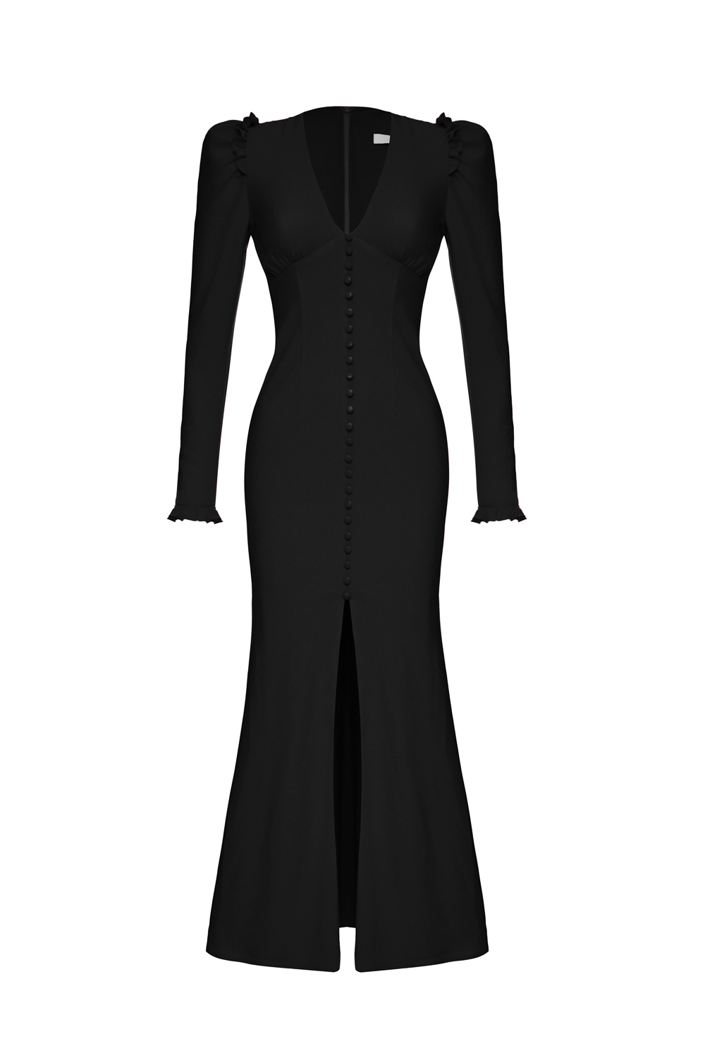 Атласное платье миди с авторским цветочным рисунком и фигурными вытачками на груди. Плечи акцентированы оборками. Застегивается на атласные пуговицы спереди и потайную молнию сзади. Длина по спинке 141 см. На модели размер S. Состав: 100% полиэстер. Подкладка: 97% полиэстер, 3% эластан.