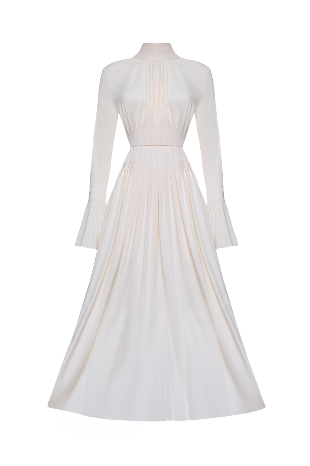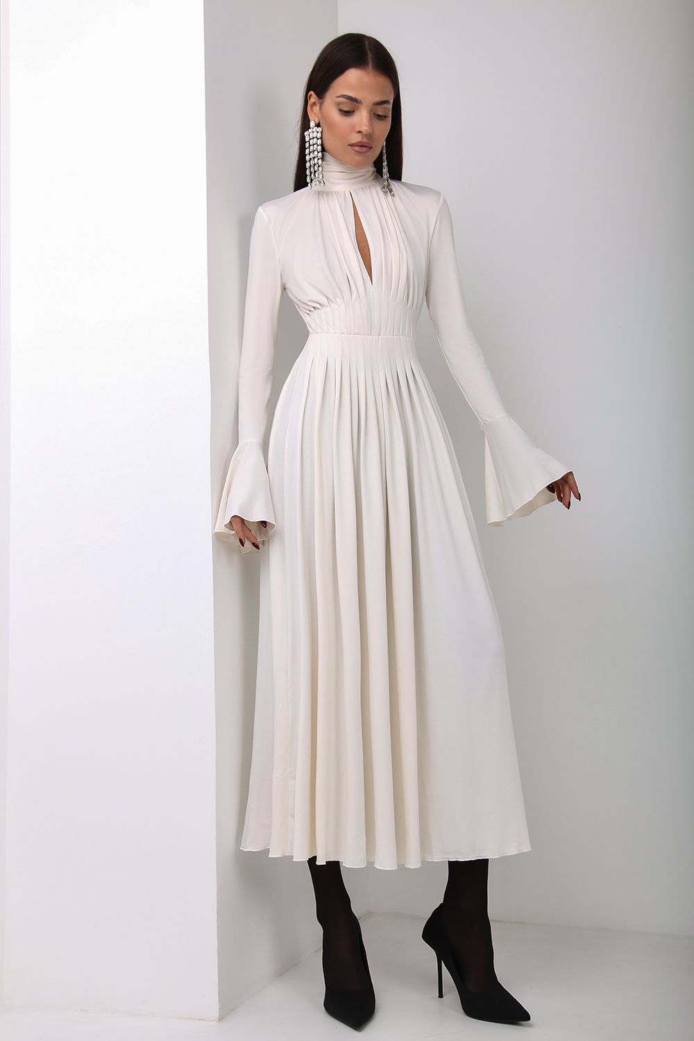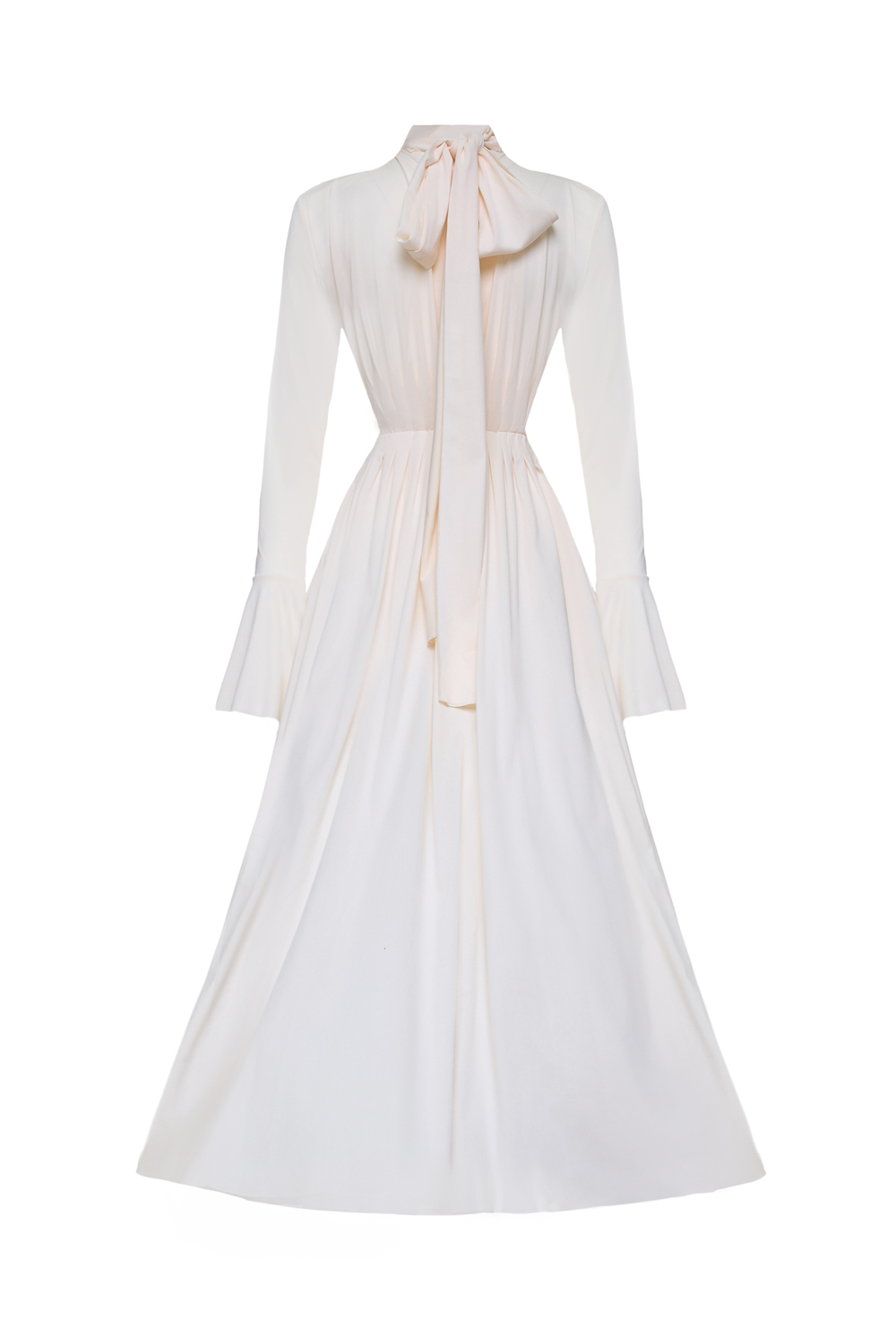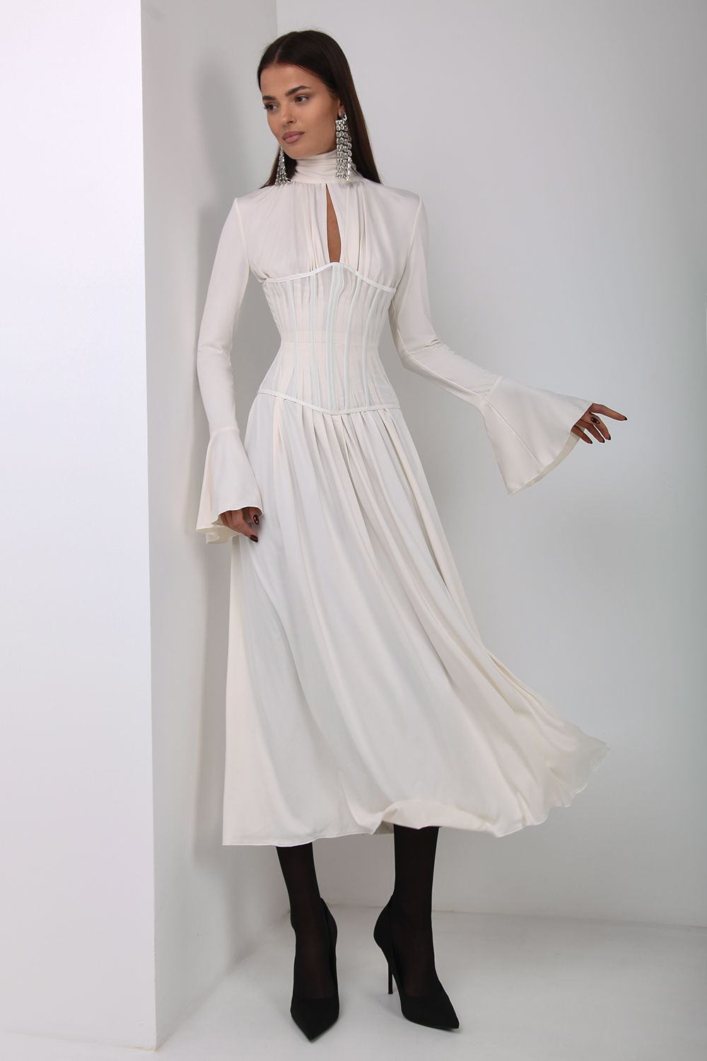 Платье-годе длины миди с овальным вырезом на груди и лентами на задней части шеи, которые можно завязать в бант. Корсет продается отдельно и идеально подойдет к платью. Артикул корсета: 25305. Длина от плеча 130 см. Состав: 92% полиэстер, 8% спандекс.