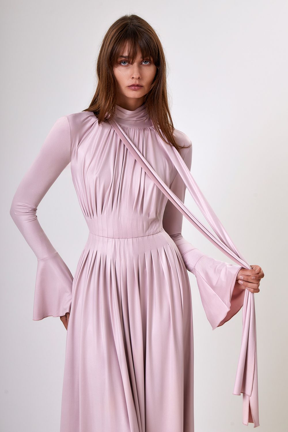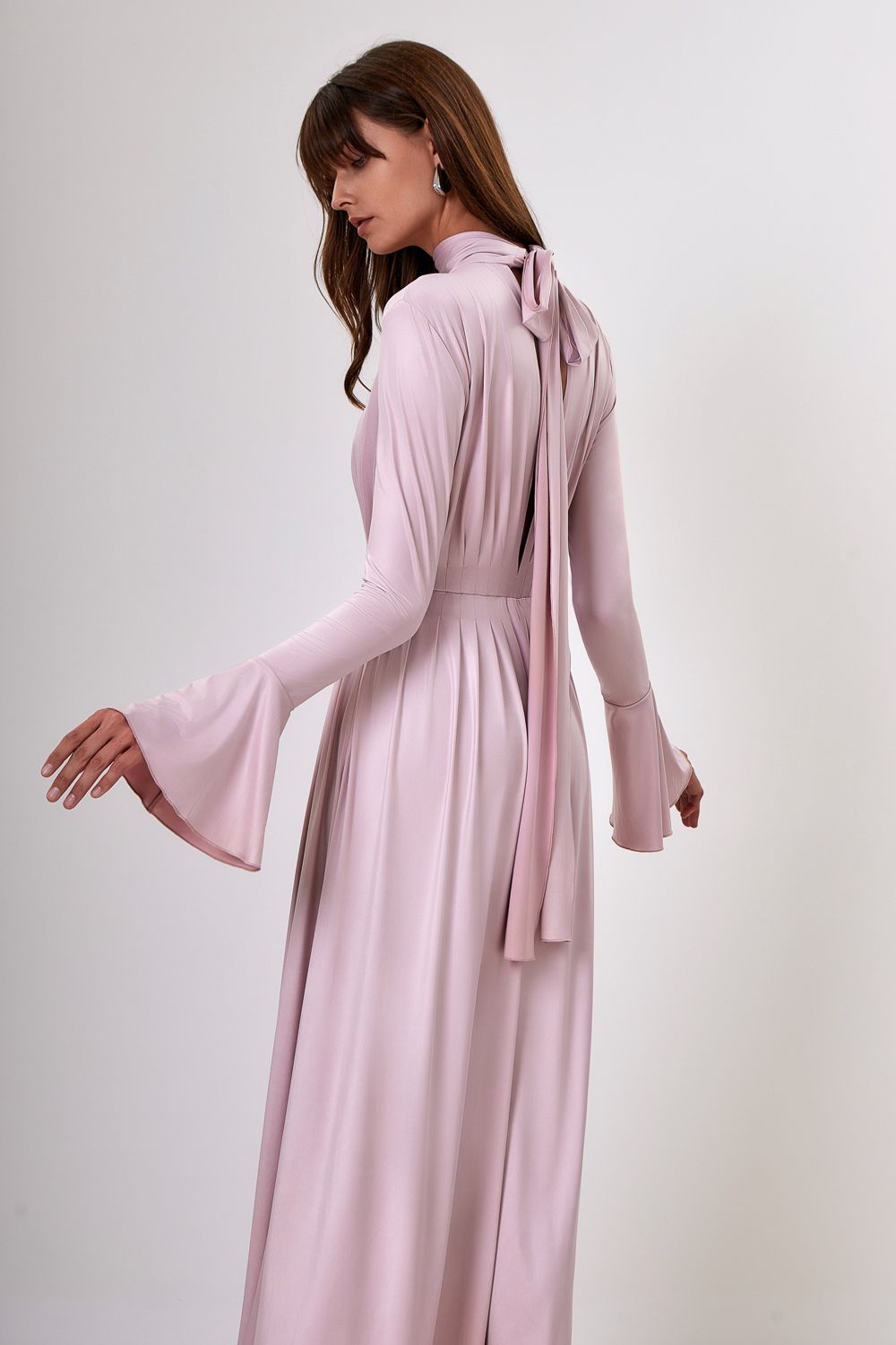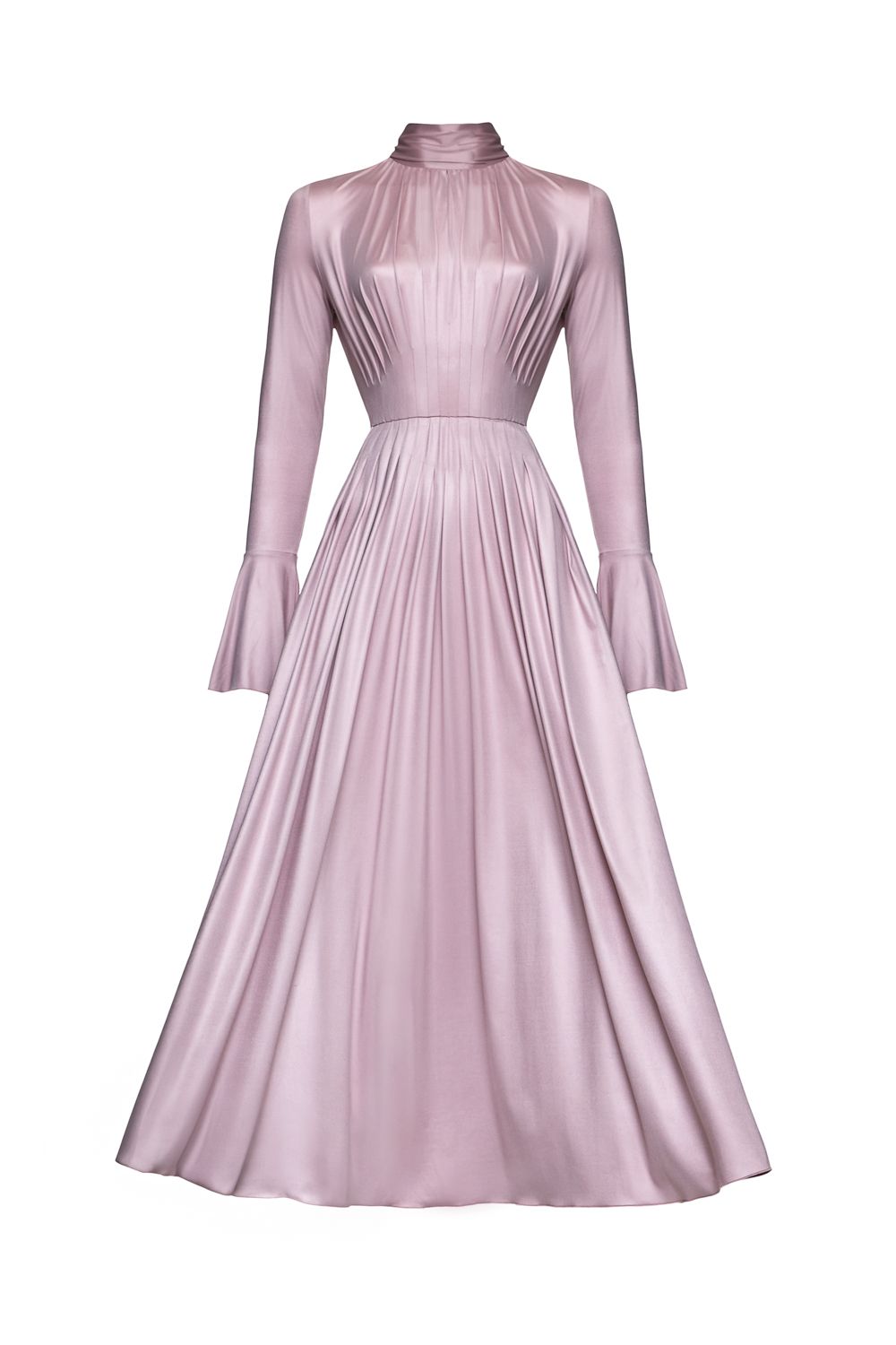 Платье-годе длины миди с овальным вырезом на груди и лентами на задней части шеи, которые можно завязать в бант. Корсет продается отдельно и идеально подойдет к платью. Артикул корсета: 25305. Длина от плеча 130 см. Состав: 92% полиэстер, 8% спандекс.
