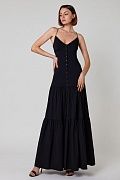 Летний сарафан длины макси. Тонкие бретели, завязывающиеся сзади, глубокий вырез и разрез сзади. На подкладке. Спереди застегивается на пуговицы по всей длине. Идеальный наряд для жаркого дня. Длина от талии 107 см. на модели размер S. Рост модели 170 см. Состав:69% хлопок, 27% полиэстер, 4% эластан, Подкладка 100% хлопок