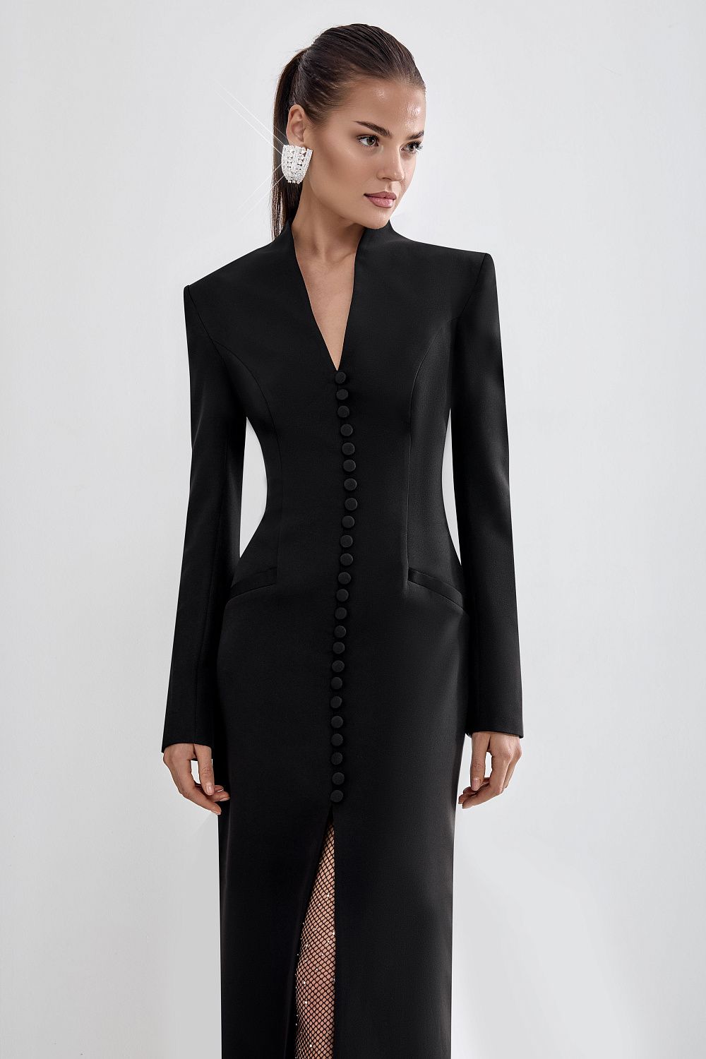 Элегантное платье длины миди. Изделие украшено декоративными пуговицами спереди и застегивается потайную молнию сзади. Состав: 71% полиэстер, 23% вискоза, 6% эластан. Подкладка: 95% полиэстер 5% эластан.