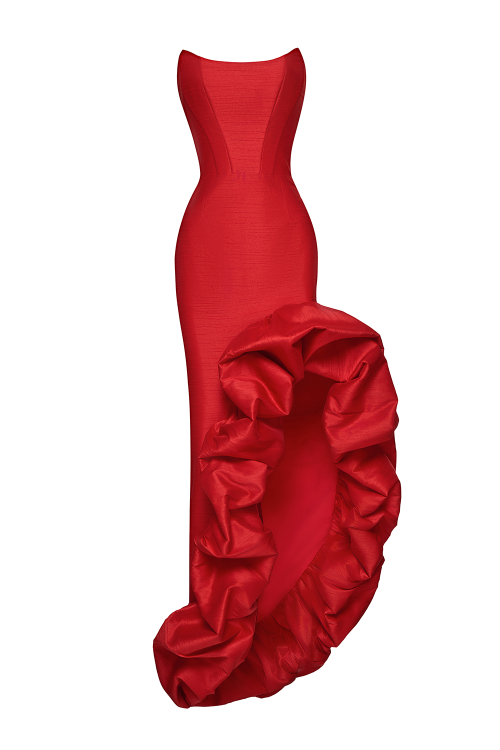 Асимметричное нежное платье длины миди, украшенное воздушными оборками из плотной ткани. Идеальный вечерний вариант. Длина от талии 100 см по длинному краю. Состав: 88% полиэстер, 12% вискоза. Подкладка: 97% полиэстер, 3% эластан.
