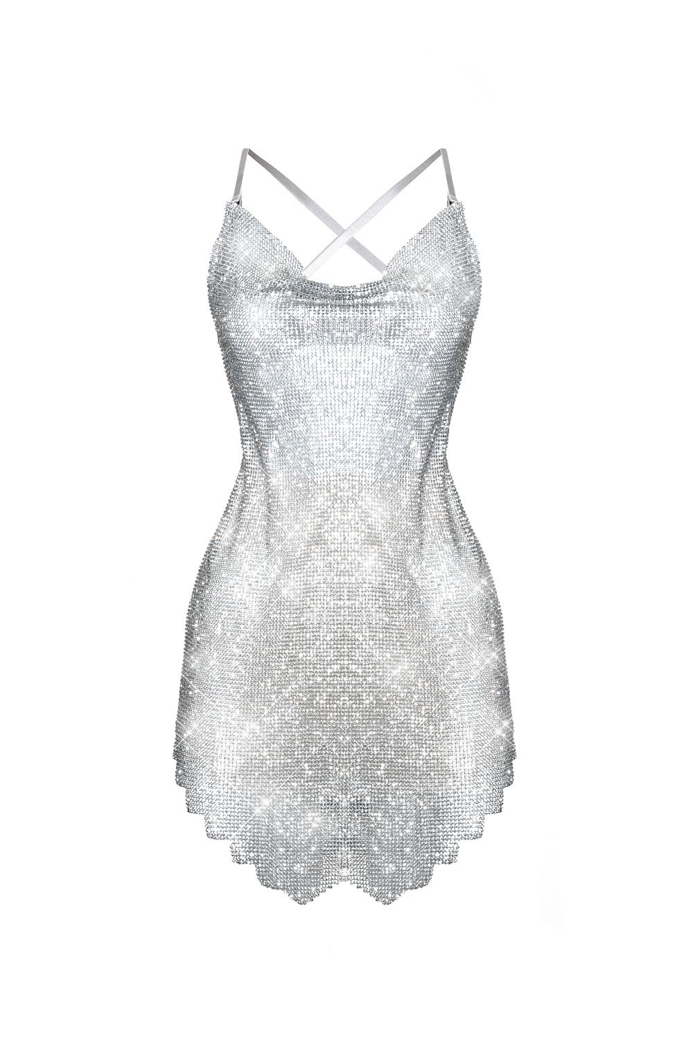 Платье длины мини с открытой спиной, полностью выполненное из страз. Идеальный выбор для красивой вечеринки. Состав: металл/стразы.