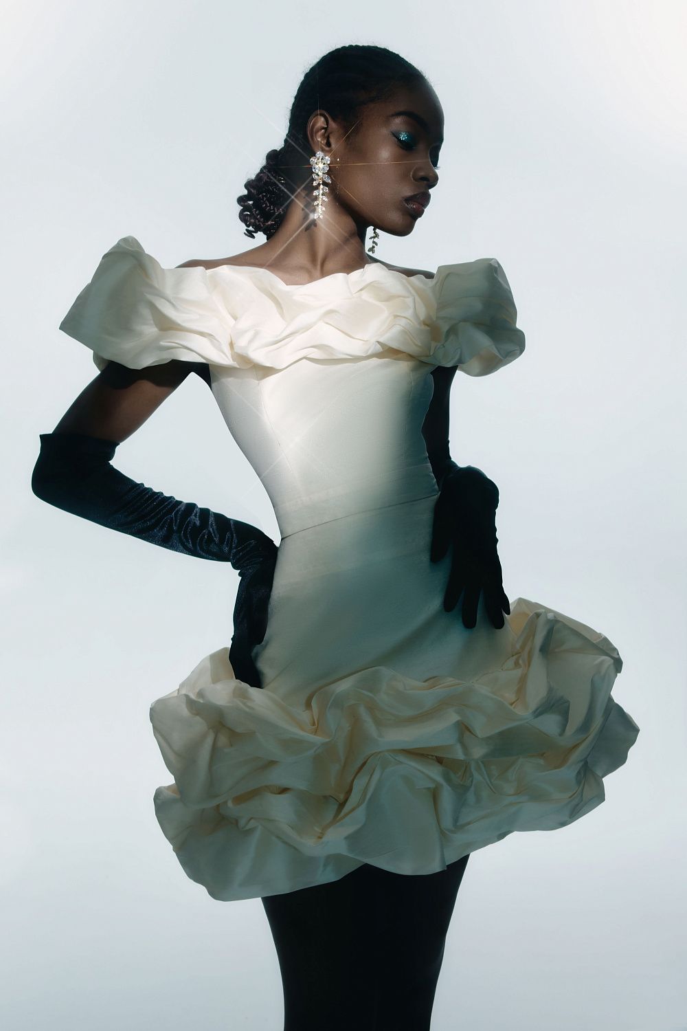 Праздничная юбка длины мини, украшенная воздушными оборками. Состав: 88% полиэстер, 12% вискоза. Подкладка: 95% полиэстер, 5% эластан.