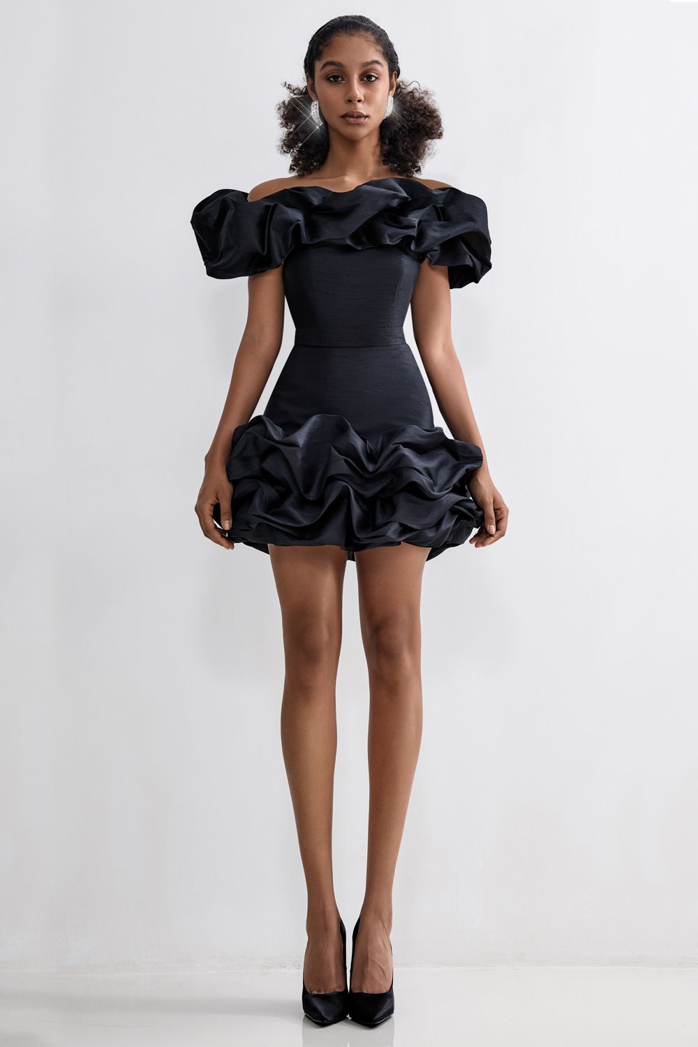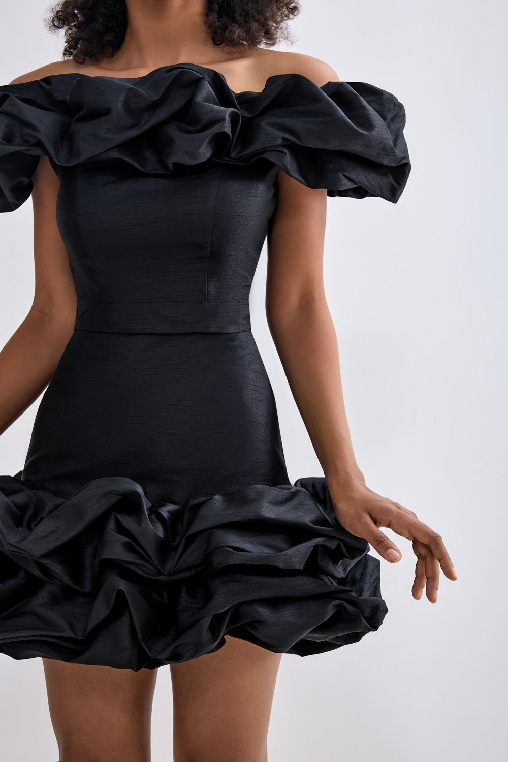 Праздничная юбка длины мини, украшенная воздушными оборками. Состав: 88% полиэстер, 12% вискоза. Подкладка: 95% полиэстер, 5% эластан.