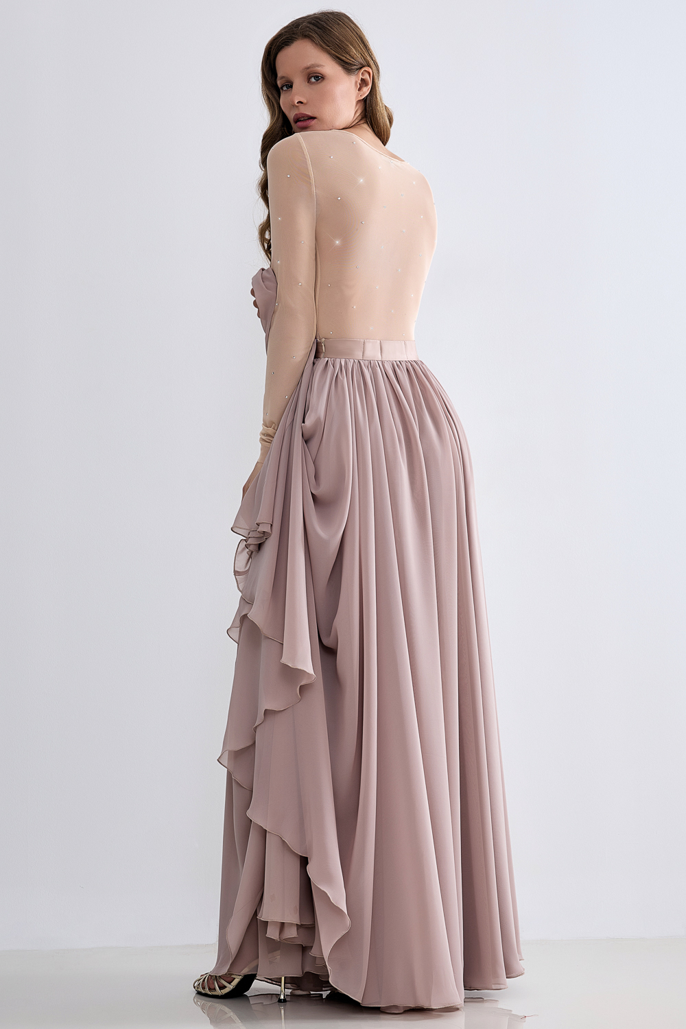 Многослойная юбка макси на атласном поясе, будет оригинально смотреться на любом мероприятии,изделие легко стилизовать и сочетать с другими предметами одежды. Длина юбки 112 см. Идеально в сочетании с боди (арт. 67770) из коллекции LN Family. Состав: 100% полиэстер. Подкладка: 100% полиэстер.