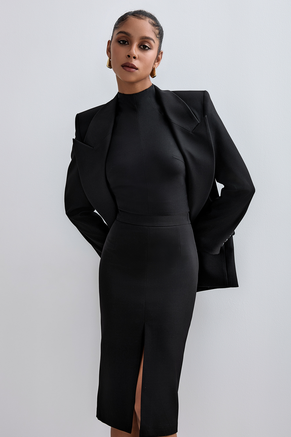 Классическая юбка карандаш с высокой посадкой и разрезом спереди. Длина: 67 см. К юбке идеально подойдут жакет (арт. 55111), топ (арт. 54954) из коллекции LN Family. Состав: 65% полиэстер,30% вискоза,5% эластан. Подкладка: 95% полиэстер, 5% эластан.