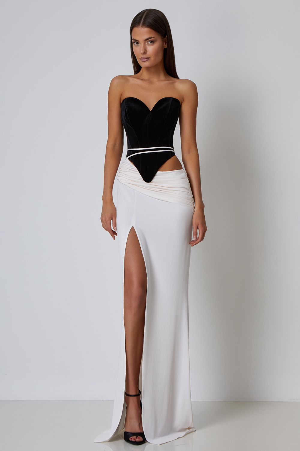 Мягкая юбка макси с заниженной линией талии, изящными ремешками и глубоким разрезом по бедру. Длина по шву 112,5 см. Состав: 92% полиэстер, 8% спандекс.